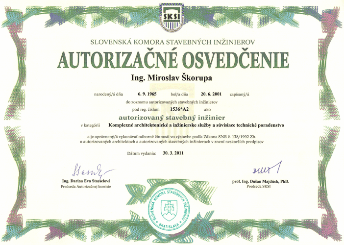 Všetci spolupracovníci sú osoby s autorizovanou odbornou spôsobilosťou vo svojich profesiách.